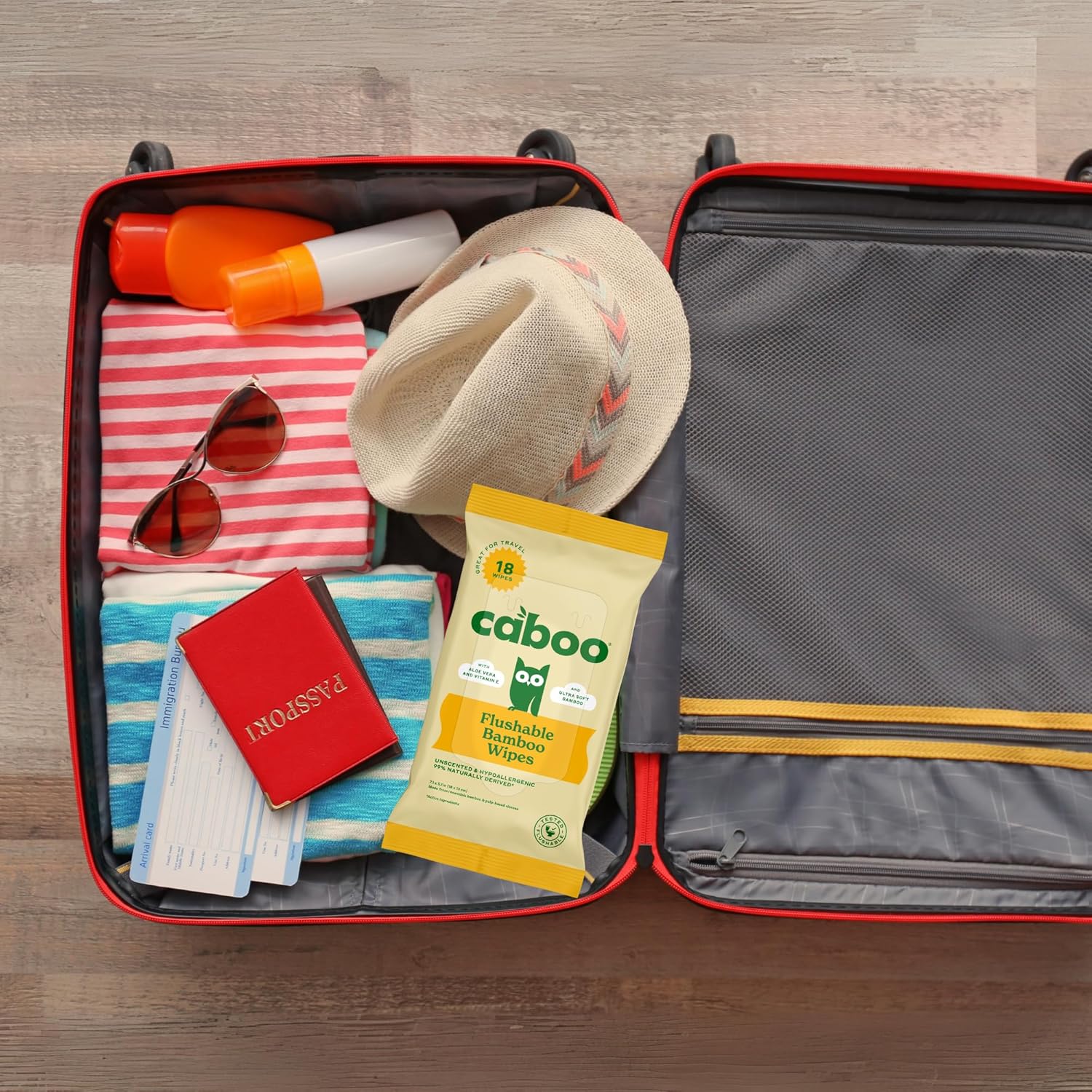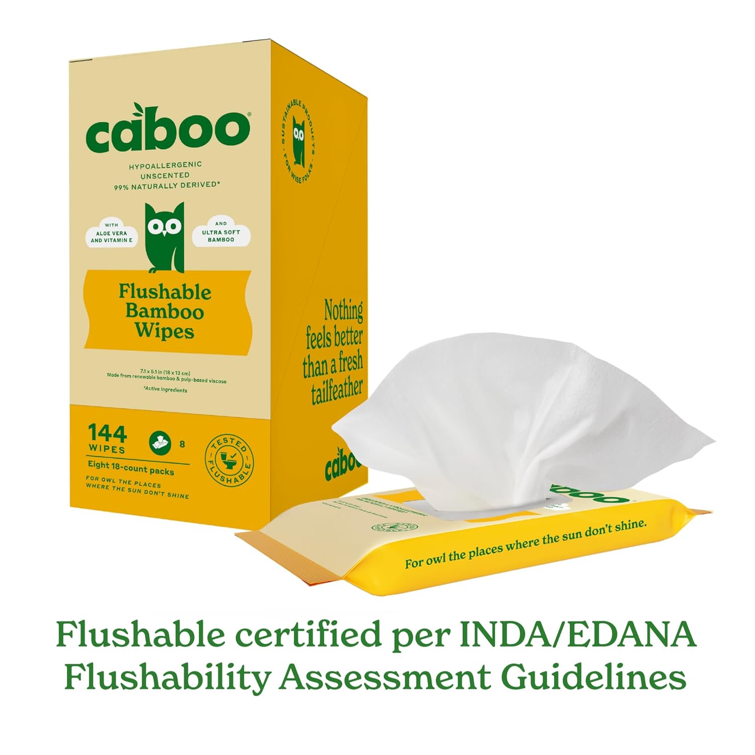- TOTAL OF 8 TRAVEL PACKS, 144 TOTAL WIPES. Includes a pack of (8) 18 count travel packs. Caboo's Manufacturing facility is accredited by BRC, FSC, FDA and ISO certifications, and our wipes are OEKO-TEX STANDARD 100 certified. We are proudly "Panda Friendly" by sourcing viscose from bamboo which is not a food source for pandas.