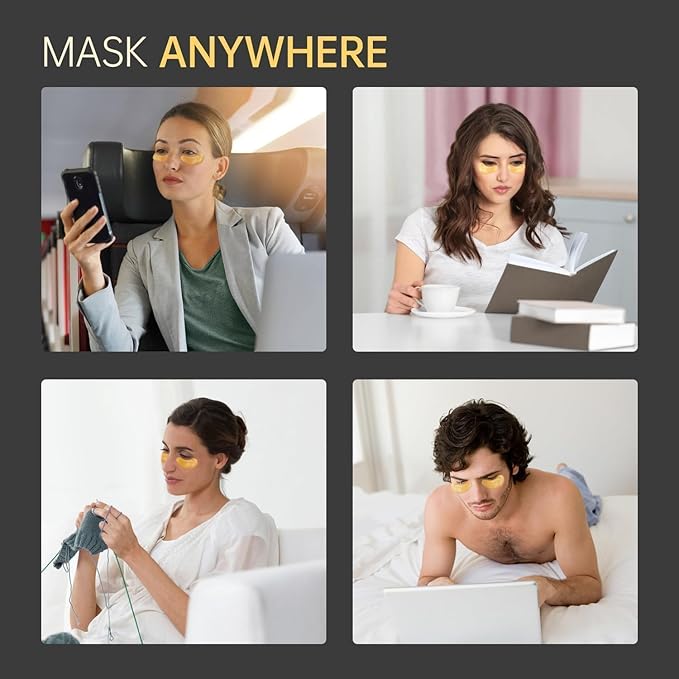 - [24K Gold Infused Brightening Treatment] Crafted with genuine 24K gold particles and vitamin C complex, our eye masks deliver instant radiance to tired under-eye areas. The gold-infused hydrogel conforms perfectly to eye contours, activating collagen production while reducing pigmentation. Ideal for daily use before makeup or post-long flights, see visible reduction in dark circles within 3 uses. Dermatologist-tested formula safe for sensitive skin. (Contains 60pcs/month supply)