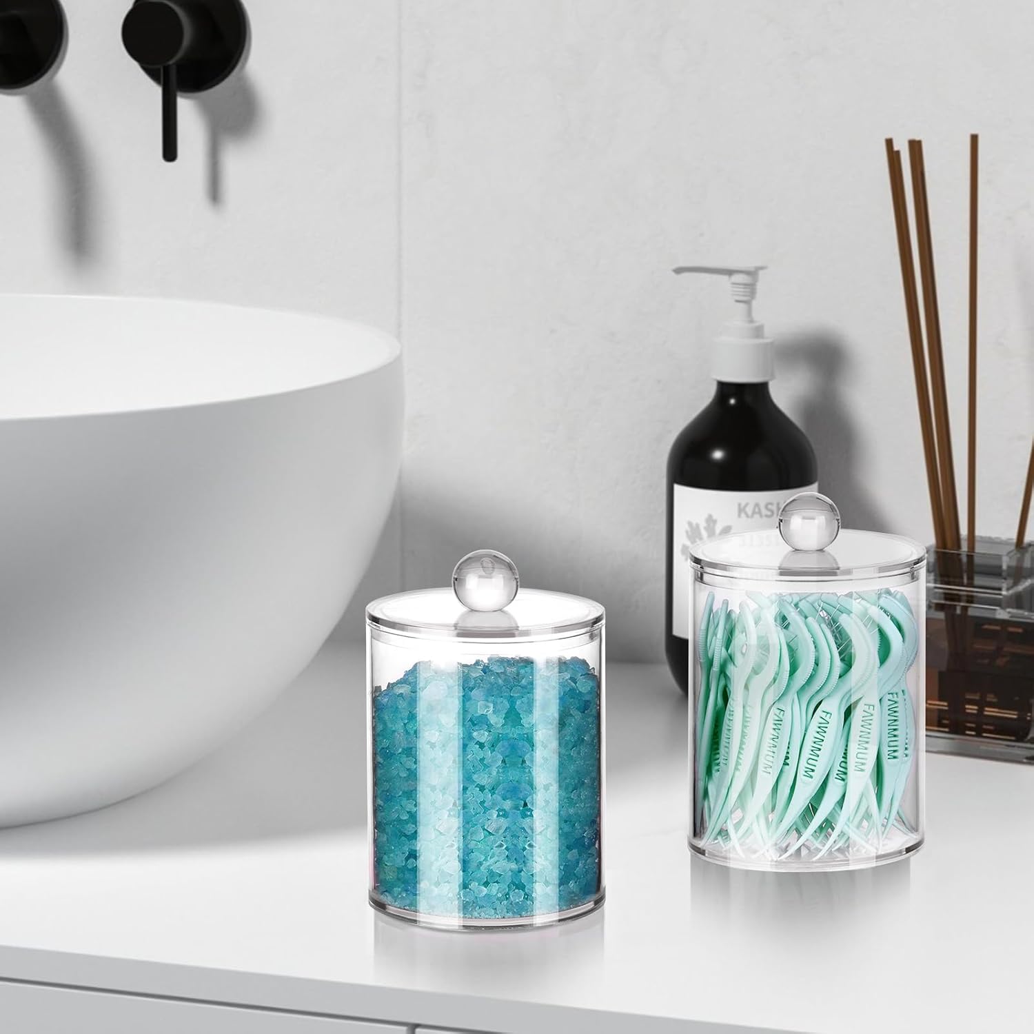- FUNCTIONAL AND BEAUTIFUL - These jars are great decorative elements for most home decor clearance accessory sets such as restroom supplies, bathroom accessories, vanity organizers, bathroom shelves, bedroom, kitchen or office