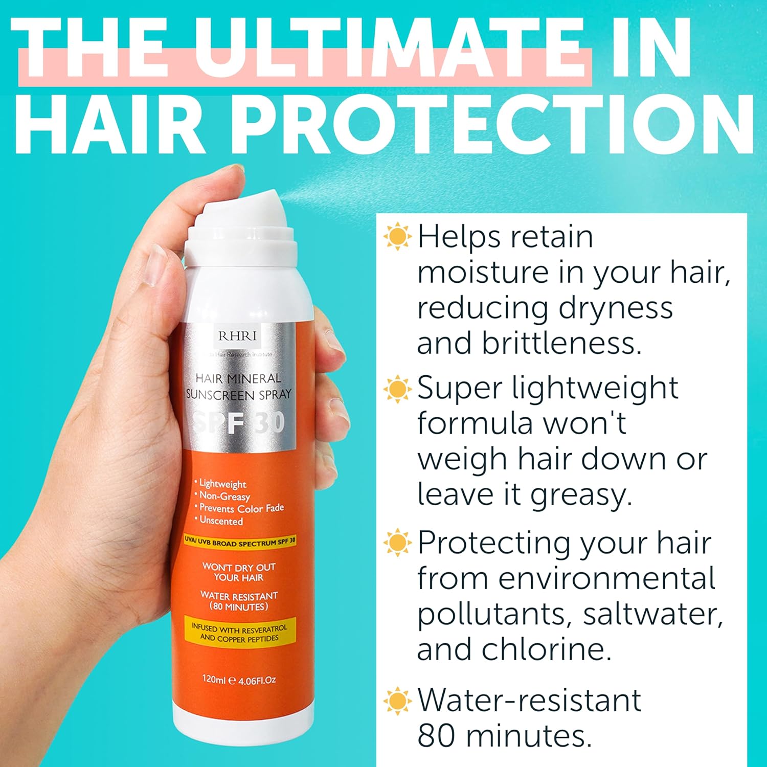 - 𝐒𝐏𝐅 𝟑𝟎 𝐇𝐀𝐈𝐑 & 𝐒𝐂𝐀𝐋𝐏 𝐒𝐔𝐍𝐒𝐂𝐑𝐄𝐄𝐍: Shields hair and scalp from harmful UVA/UVB rays with broad-spectrum protection. Helps prevent sunburn on exposed scalp areas while keeping hair healthy, vibrant, and protected under the sun.