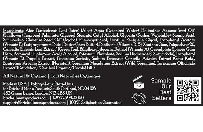 - Key Ingredients in this men's anti aging face cream: Natural & Certified Organic ingredients, including Retinol, Hyaluronic Acid, Aloe
