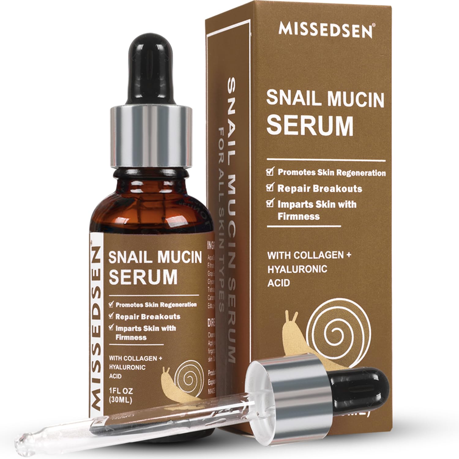 Snail Mucin Serum for Face with Collagen & Hyaluronic Acid,Smoothes Wrinkles,Improves Elasticity,Firms Skin 1 Oz Daily Use