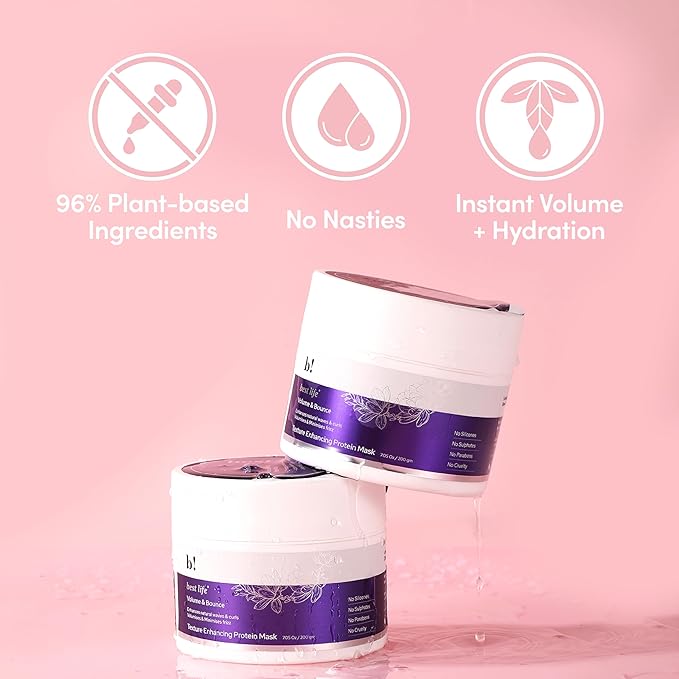 - Your hair is made up of proteins. When hair loses protein it becomes weak and limp and loses bouncy-ness. Our Volume and Bounce hair mask is made with natural-origin Pea-Protein, Shea-butter and Aloe-vera that instantly add back protein and strength to weak strands making it voluminous, bouncy and shiny.