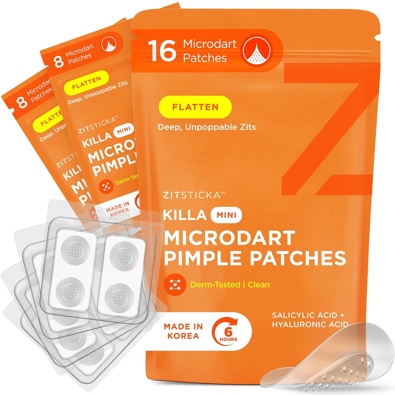 - Portable and Easy to Use (16-Pack) - Each Killa Mini zit stickers pack is neatly packaged in a resealable pouch, keeping your convenience in mind! Apply the salicylic acid pimple patches, and leave it on for 2+ hours. Perfect for pimple care on the go!