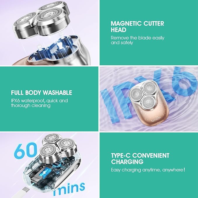 - Waterproof & Easy To Operate: Electric razor for women is IPX6 waterproof all over, can be used wet or dry! Magnetic head, easy to remove, can be rinsed directly under the running water, easy to clean. One-button operation is easy for both novice and experienced shavers!