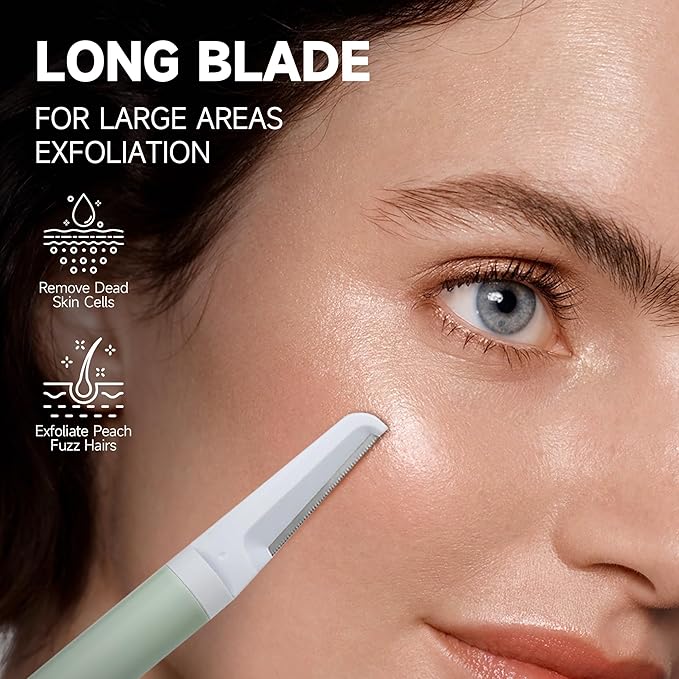 - 【Smooth & Professional Razors】This face razors work great for dermaplaning and trimming up eyebrows, taking off excess hair and dead skin from your face/body, making your skin as smooth as jade. These blades are made of premium stainless steel materials. With very sharp blades and a denser tooth structure design, the new upgraded version safely and effectively removes skin debris and facial hair for women.