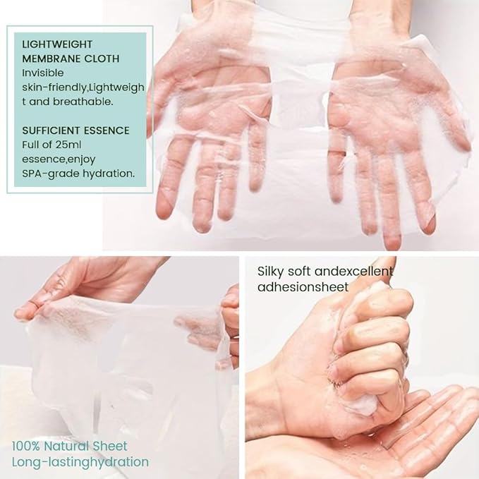 - FACIAL SKINCARE SHEET MASK:This premium women's skin care mask is silky smooth,moisturizing,refreshing and has increased efficacy and adhesion to block evaporation and lock in moisture for a hydrating effect that lasts all day