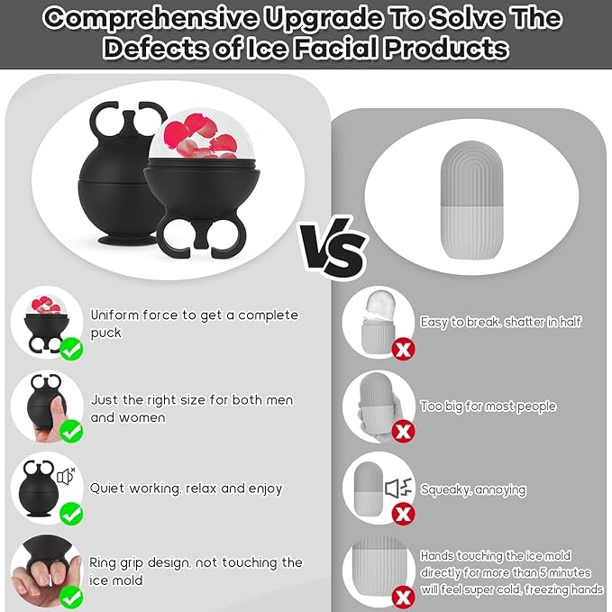 - HIGH QUALITY & MONEY SAVING: Ice roller for face made of high-quality silicone material, Reusable, durable, BPA free, face massager tool is made of food grade silicone. Pack of 2 for alternate use, which can save you money. DIY beauty recipes according to skin needs, lemon water whitening, green tea anti-inflammatory, cucumber water reduces swelling, mint leaves refreshing, coconut juice improves skin, have a spa experience at home. ice face roller ice globes for face ice for face ice facial