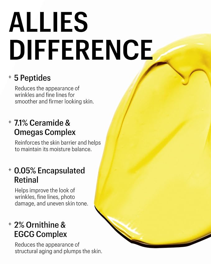 Allies of Skin Retinal 0.05% Peptides Repair Night Cream with 0.05% Encapsulated Retinaldehyde, Peptides, 2% Ornithine, EGCG Complex, 11 Brighteners, Antioxidants, and 7.1% Ceramide & Omegas Complex
