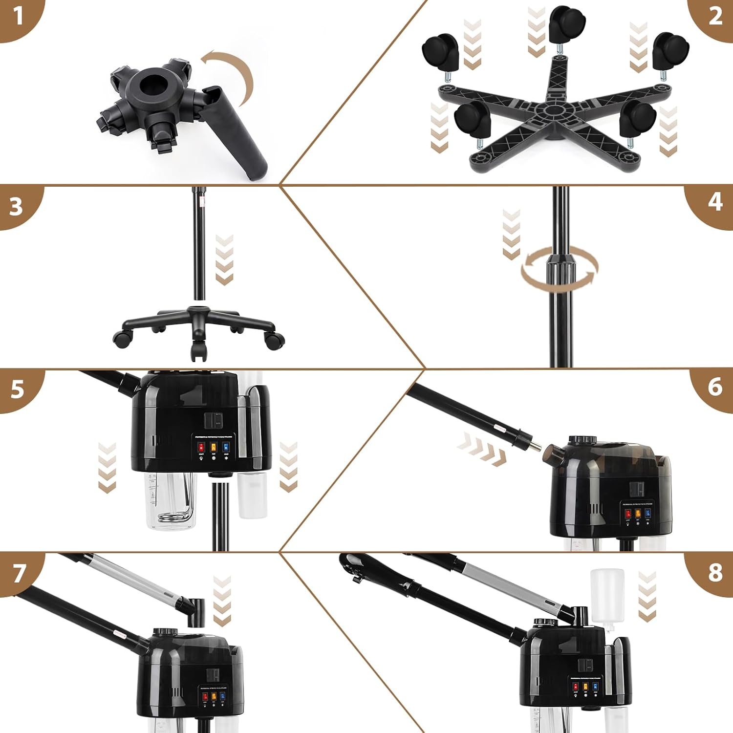 - Professional facial steamer has an adjustable height of 36-52 inches, a swivel nozzle, and removable casters for lying down or sitting down to enjoy your facial spa