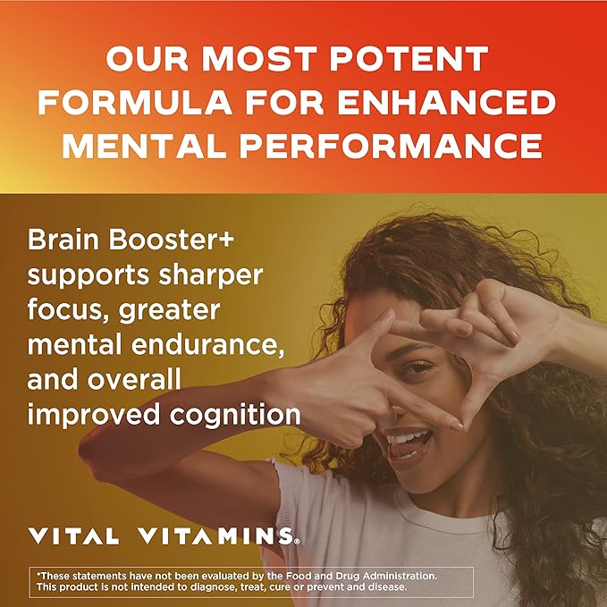 - Enhanced Focus & Memory: Lion’s Mane, Ginkgo Leaf, and Vitamin B6 in Brain Booster Plus support mental clarity, focus, and memory retention.