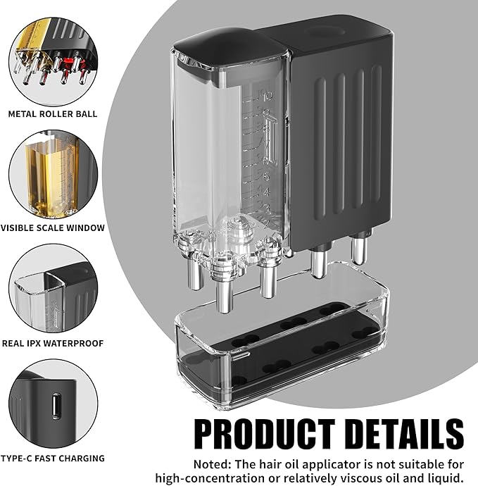 - Precise Oil Application: Features four liquid-dispensing teeth that accurately deliver oil or liquid to hair roots, ensuring even coverage without excess mess. Perfect for low-viscosity liquids like essential oils and scalp treatments.