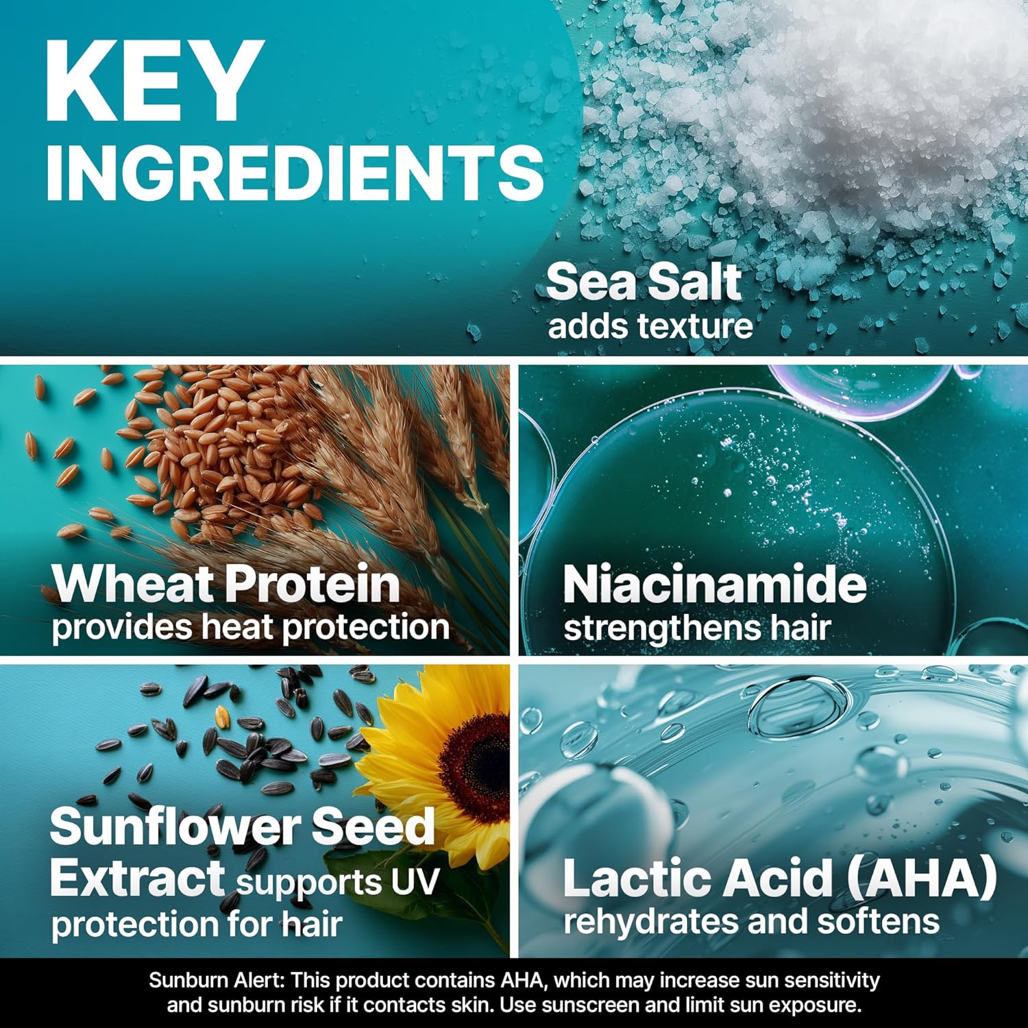 - Hydrates & Conditions: infused with hydrating ingredients to nourish and condition hair, our salt water spray for hair tackles dryness and is gentle on your hair & skin, acting as a scalp spray and a texturizing spray at once