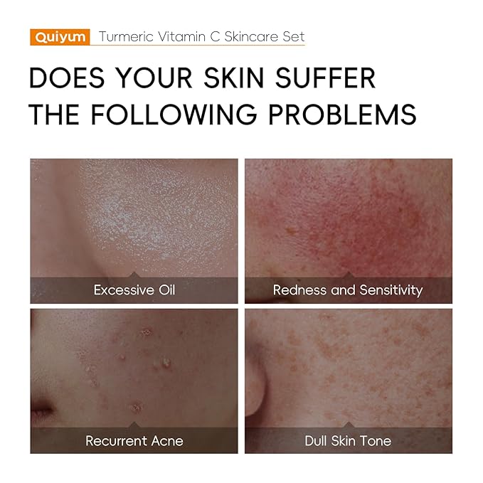 - 【Package Content】QUIYUM Turmeric Vitamin C Skin Care Set includes Serum, Eye Cream, Cream, 2 Type Mud Mask, Soap, Essence Oil.