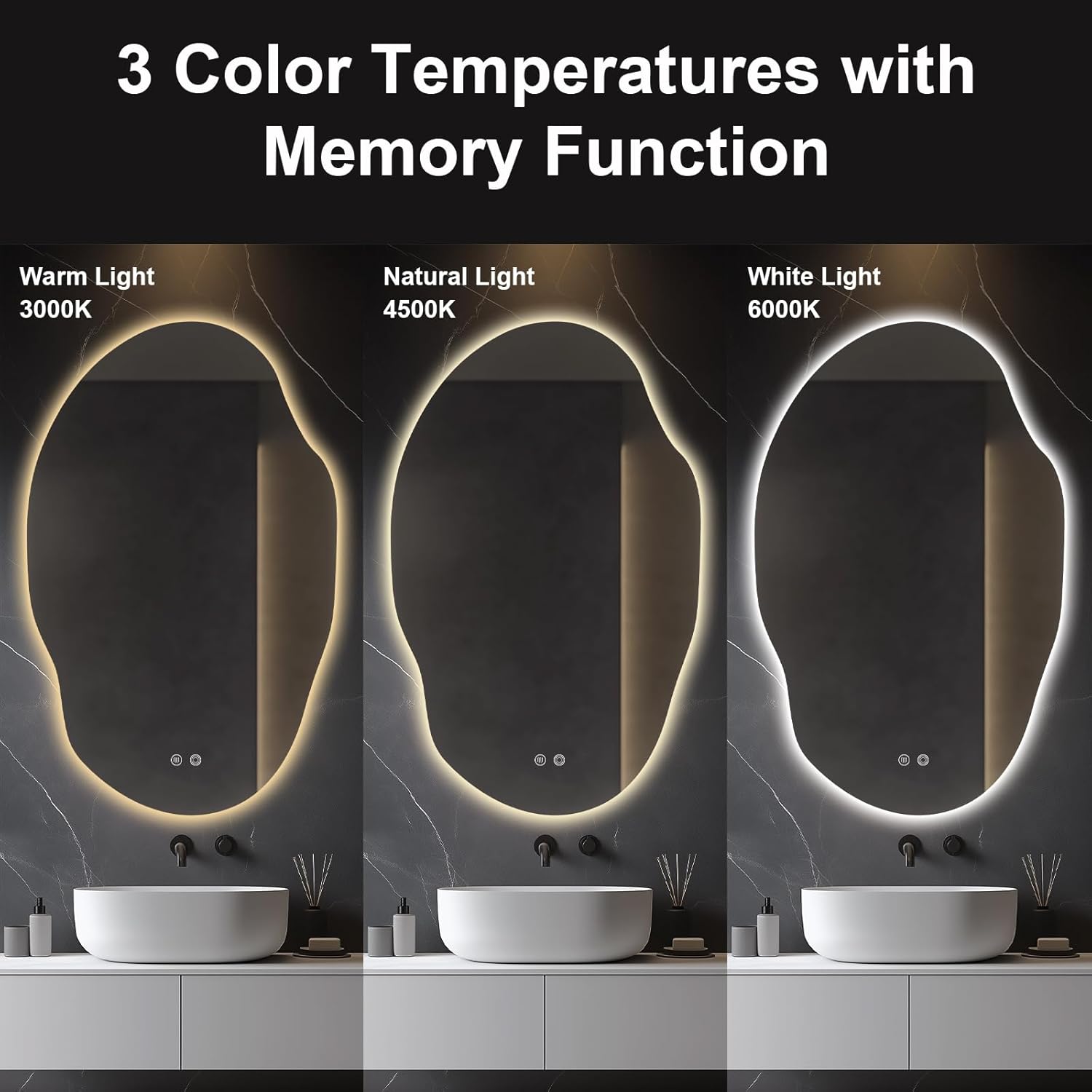 - Dimmable LED Light with 3 Color Temperatures: Choose from 3 color temperatures to suit your bathroom mood, with adjustable brightness via a touch sensor button for easy control.
