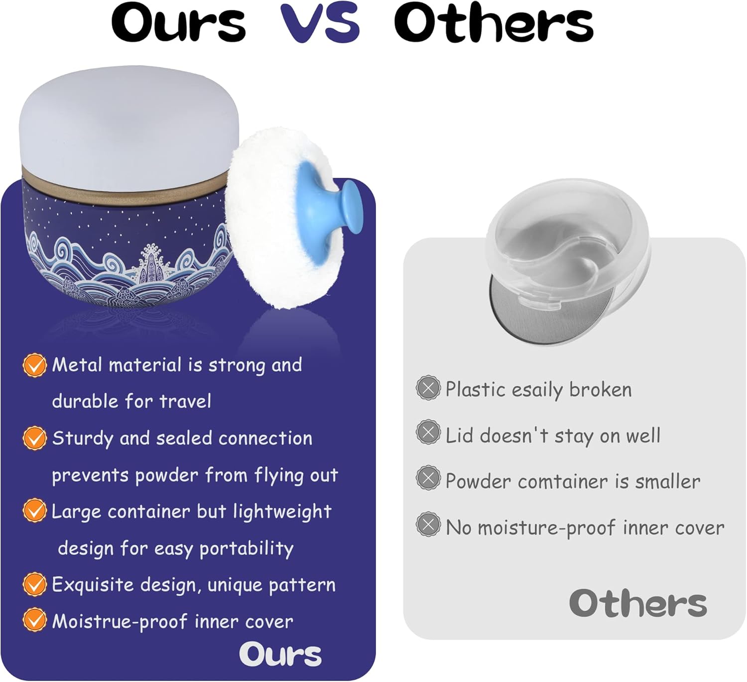 WEMEGA Body Powder Case with Powder Puff Powder Container Tea Box for Baby and Women Powder Puff and Powder Case for Travel (Blue Sea1)