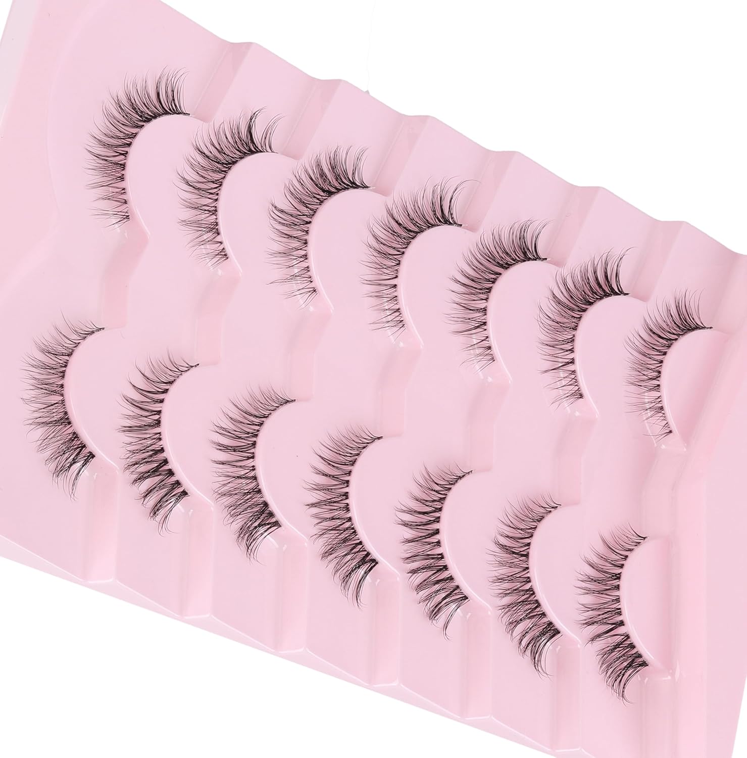 - VEGAN & REUSABLE: 7 pairs lashes pack. The fake eyelashes use ultra-light faux mink fibers, cruelty-free, skin friendly. Bring pretty lashes extension look without damaging your own eyelashes, suit for DAY-TO-DAY use, party and so on