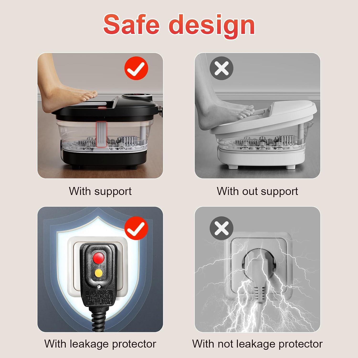 Collapsible Foot Spa Bath with Heat,Foot Massager with Two Side Supports,Leakage Protector,Temperature Control,Bubbles,Red Light,Timer,Feet Spa Tub,Feet Soaker,Gifts (Black)