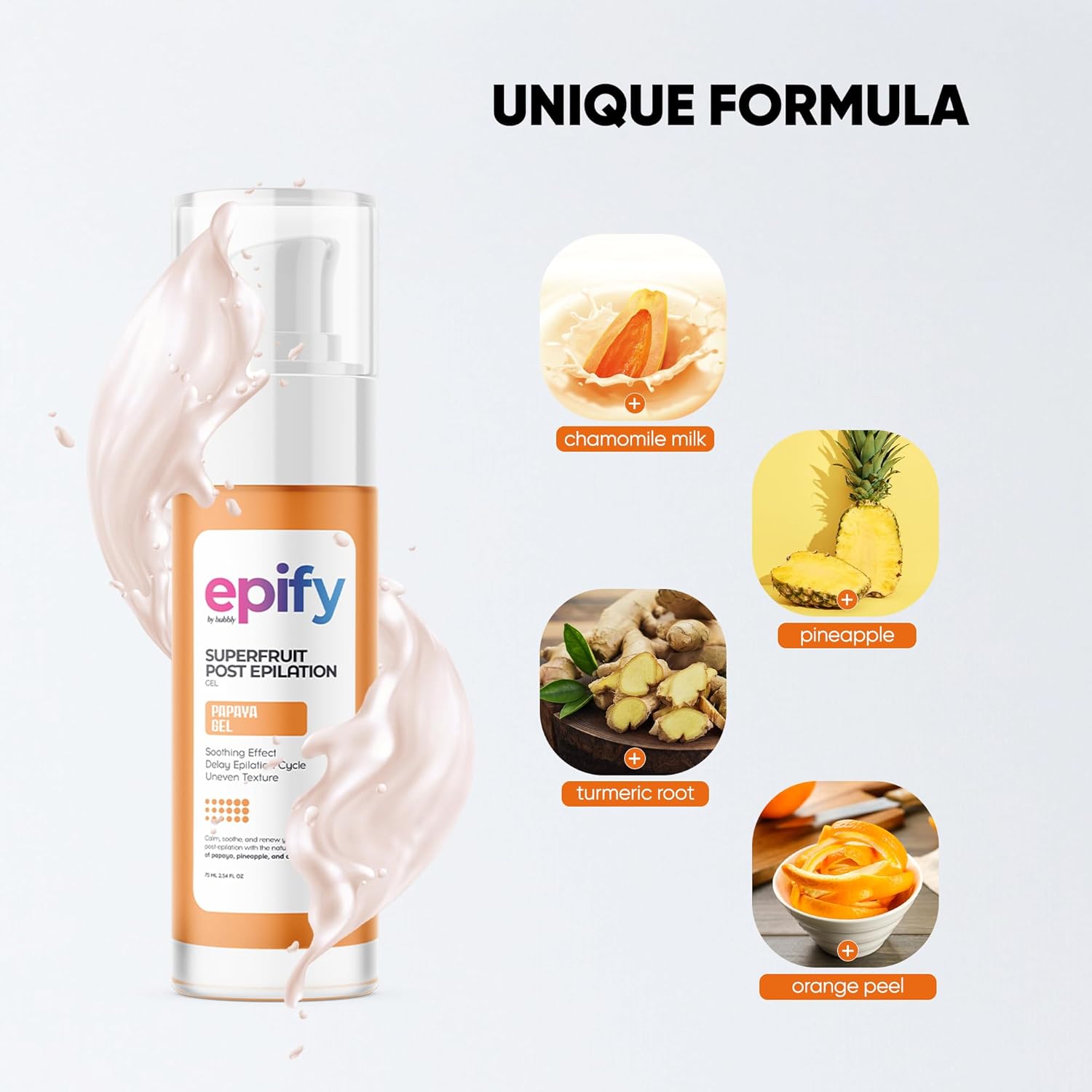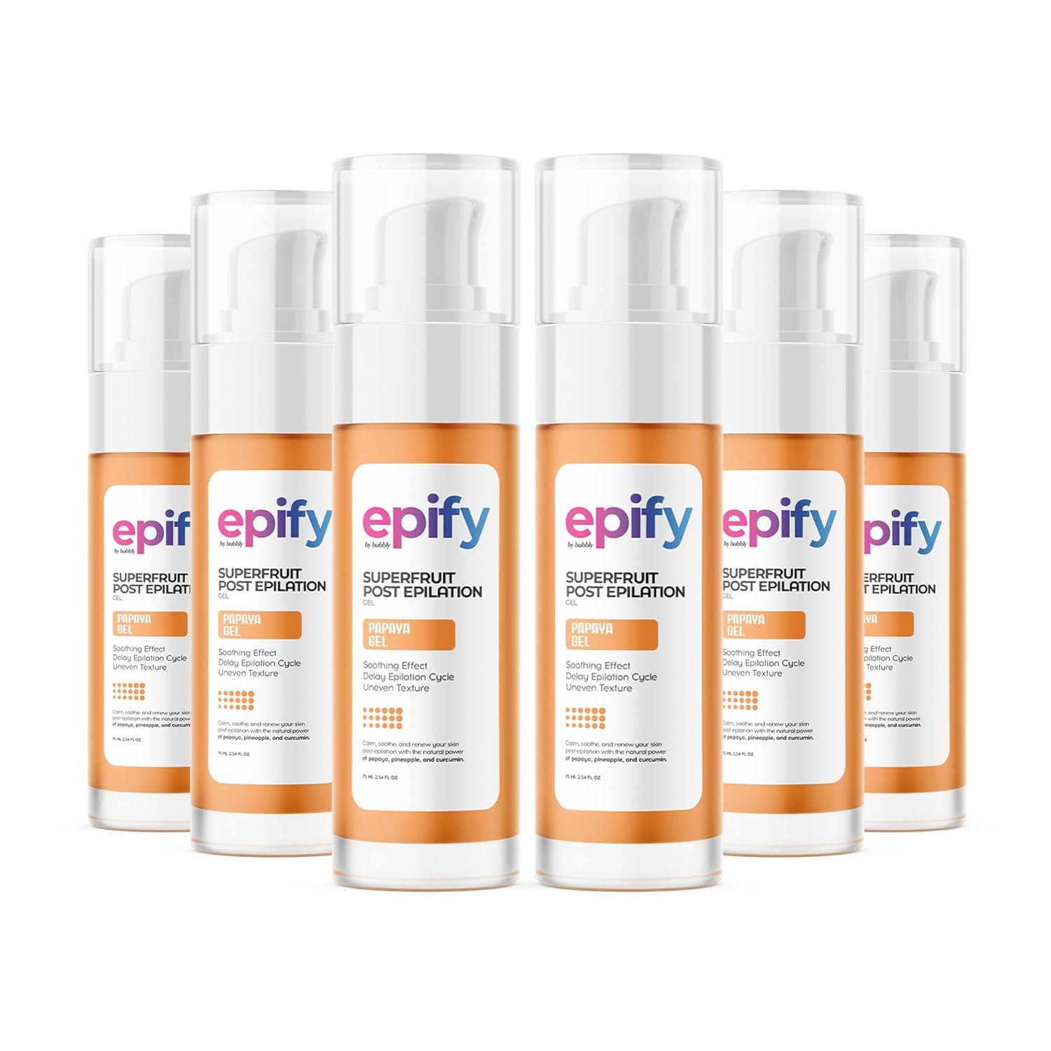 Epify Superfruit Post Epilation Papaya Gel, Hair Inhibitor for Face and Body, Non-Irritating Formula, Soothing Effect, Hair Growth Minimizer, 2.54 Fl Oz (6)