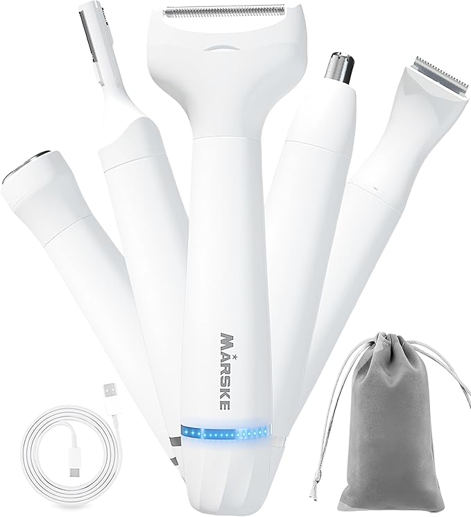 5 in 1 Facial Hair Removal and Bikini Hair Trimmer for Women, Nose Eyebrow pubic Hair Trimmer,Replaceable Electric Razors, Waterproof Electric Shaver Easy Cleaning, Women's Grooming Kit