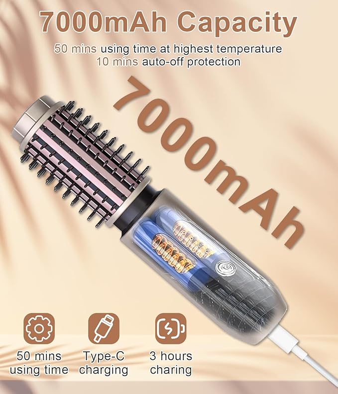 - 【Long Lasting Battery】This mini cordless curling iron rechargeable is equipped with a 7000mAh battery, which supports about 50 minutes of use time, can do 3-4 hairstyles, and the USB Type-C charging port allows for fast charging. It is perfect for your wife, partner or friends, helping them to easily achieve a variety of hairstyles