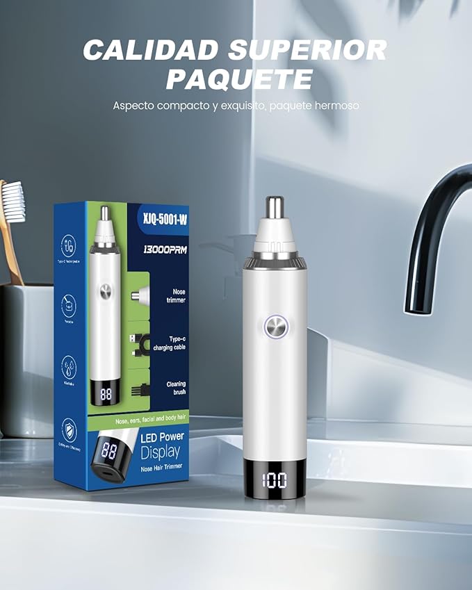 Ear & Nose Hair Trimmer with LED Display for Men Women,Painless USB Rechargeable Eyebrow & Facial & Nose Hair Trimmer Clipper,Professional IPX7 Waterproof Dual Edge Blades 12500 RPM