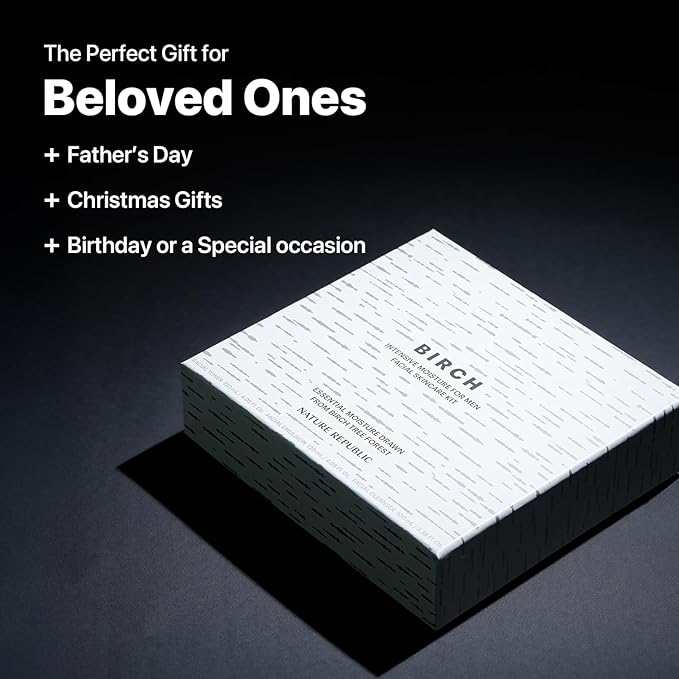 - [ABOUT BIRCH] Birch water is the sap of birch trees and harvested in early spring. During the winter, birch trees store nutrients that are later released into their sap. Inspired by this natural, rejuvenating skincare ingredient. Nature Republic Birch Intensive For Men Moisture Skin Care Kit helps to fight the appearance of aging skin by gently Cleansing, improving uneven Skin tone, and Moisturizing Facial skin.
