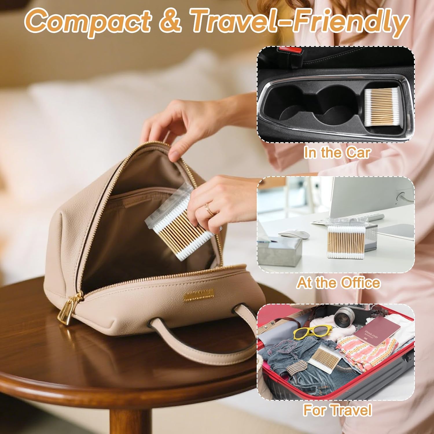 - Double-Tipped Organic Cotton Buds: Soft, gentle organic cotton swabs for delicate areas, ensuring safe ear care, cotton swabs for makeup removal, and clean, precise touches.
