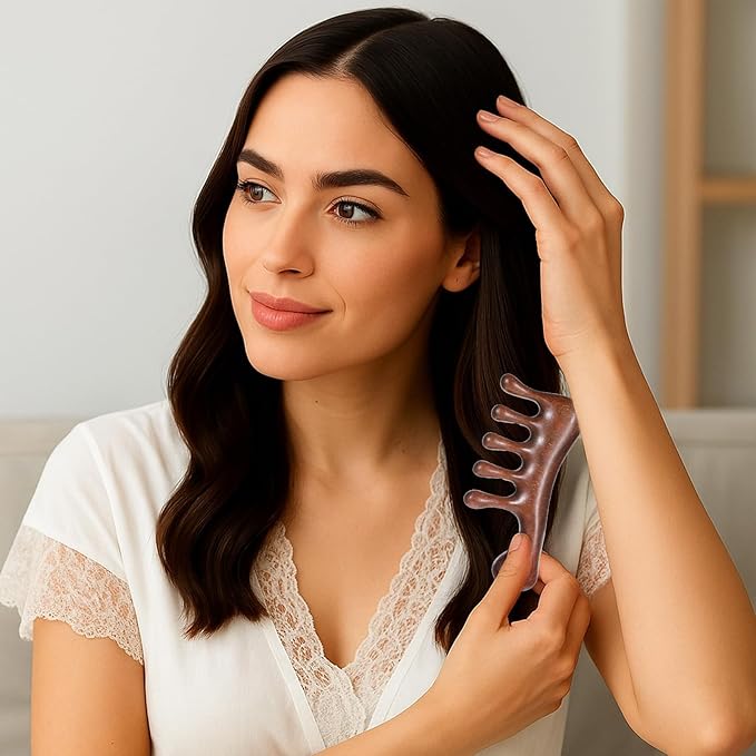 - Scalp Gua Sha Comb: This smooth tooth hair massager glides effortlessly from the hairline to the neckline, relieving tension and improving blood flow. The lock comb rounded teeth prevent irritation can promoting hair nourishment and growth