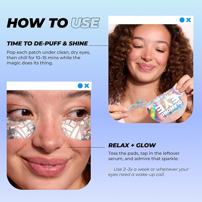 Vitamasques Diamond Eye Pads 3-Pack - Soothing and Rejuvenating Eye Patches Korean Skin Care Reduce Fine Lines, Puffiness & Dark Circles