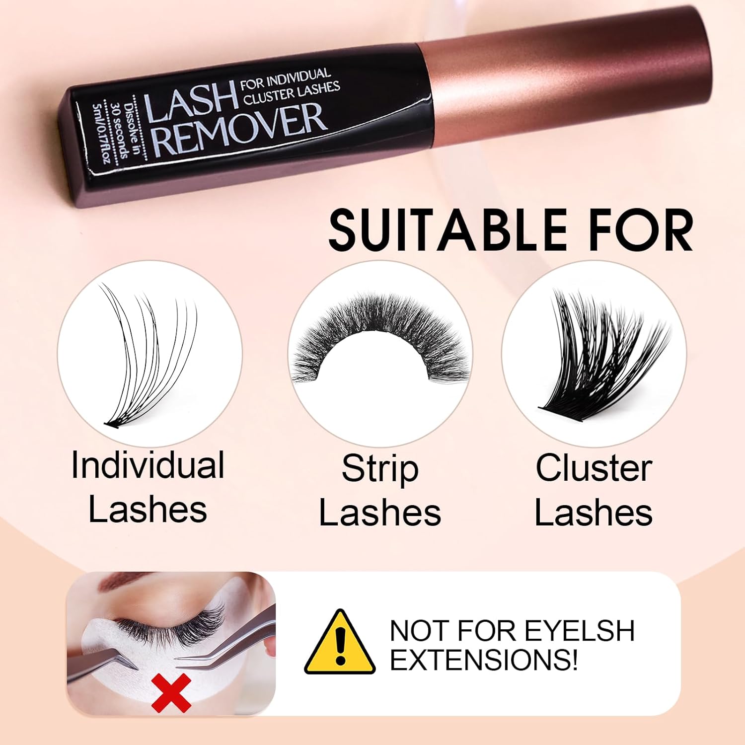 - QUICK REMOVAL: To remove lashes, simply apply the lash glue remover to the base of the cluster, wait 15-30s until eyelash glue and other oils and stains have dissolved, then gently remove lashes and residue.