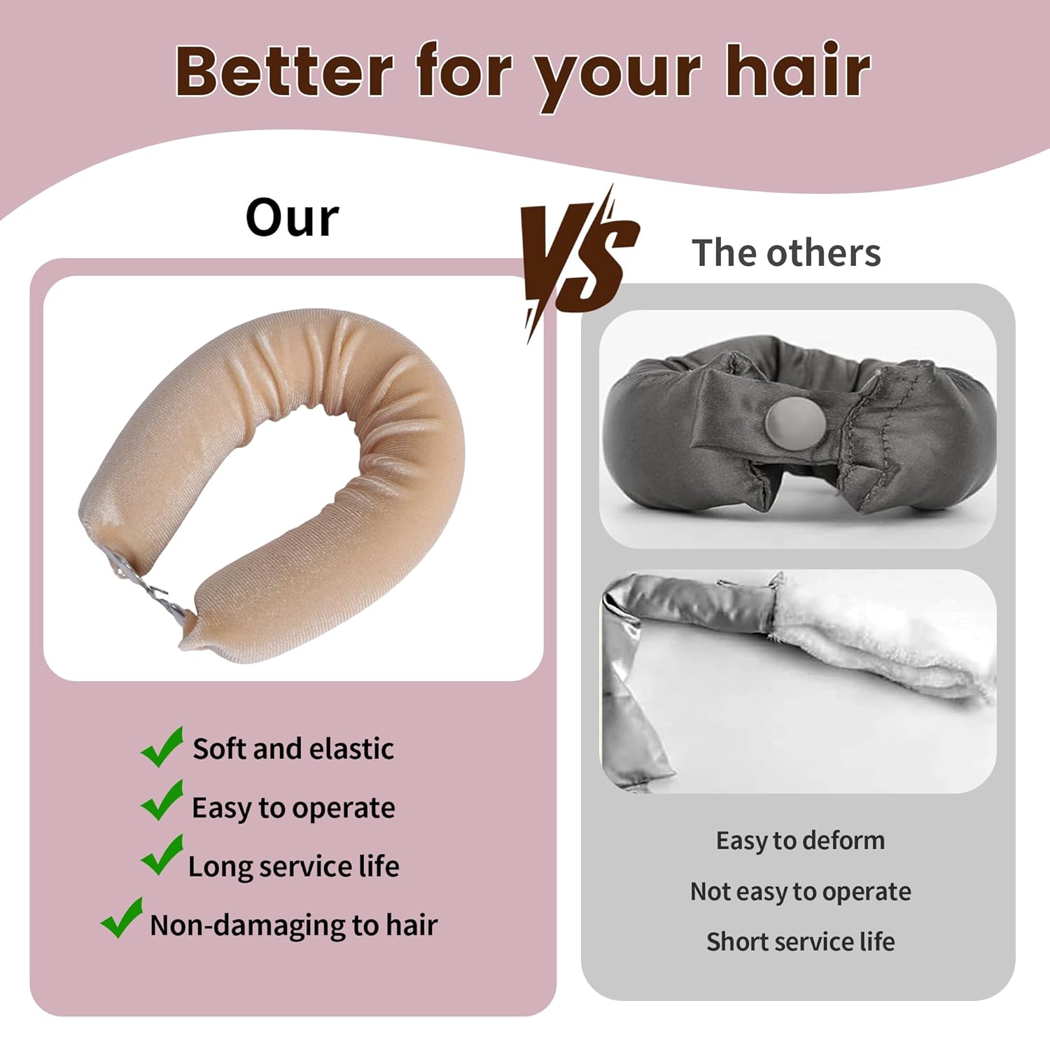 - 【HOW TO USE】 Our heatless hair curler do not rely on heated rollers, keep your hair slightly damp before use, wait for air-drying your hair after use to bring your own curling function, it is the most comfortable and easy styling tool for curly hair styling.