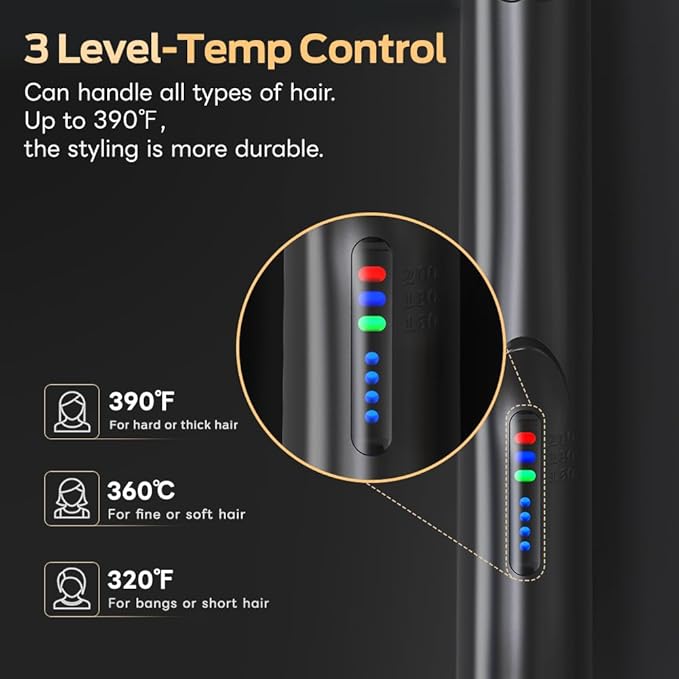 - 【Professional 390℉】It is possible to cope with all the hair by 3 stage temperature adjustment. 390℉:For hard or thick hair;360℉:For fine or soft hair;320℉:For bangs or short hai