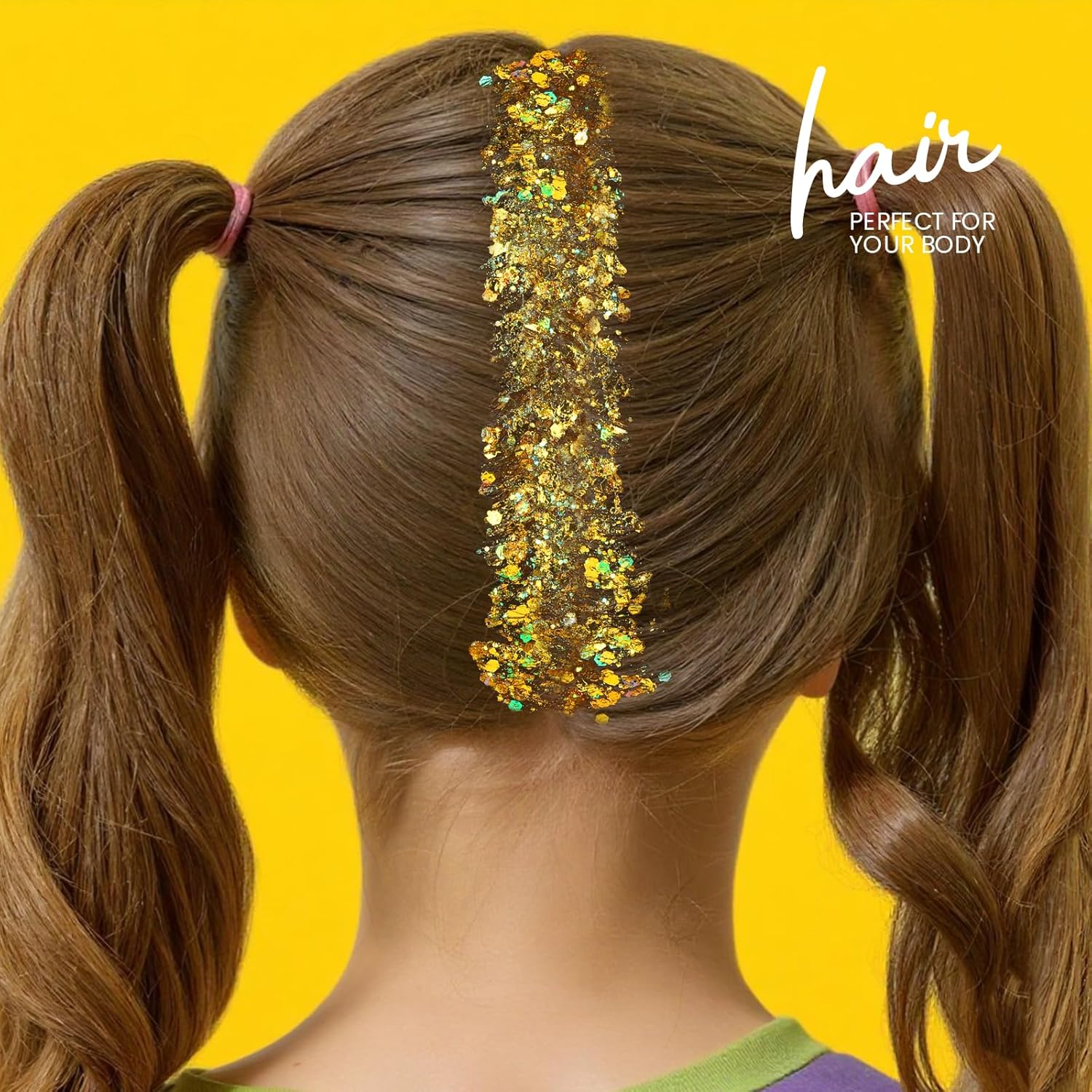 - Transform any occasion into a glamorous affair with our gold glitter gel. Suitable for use on the face, body, and even hair, it adds a whimsical touch of bling to any ensemble. Perfect for kids and adults alike, it's a must-have accessory for festivals, concerts, parties, and any celebration that calls for a little extra magic