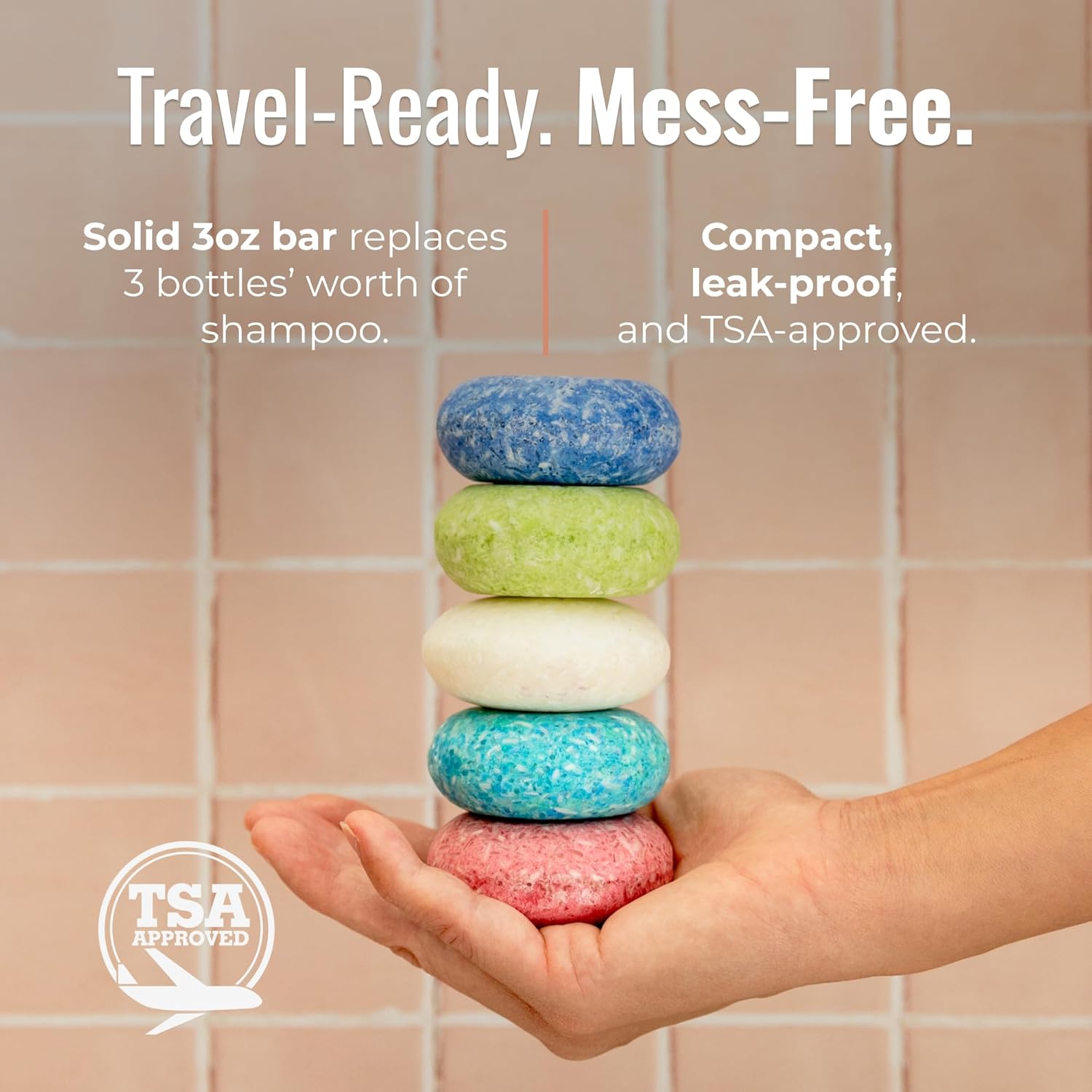 - COMPACT, TRAVEL-FRIENDLY DESIGN: This solid shampoo bar fits easily into any travel kit, is TSA approved, and eliminates messy liquid spills; perfect for gym bags, suitcases, or minimalist lifestyles