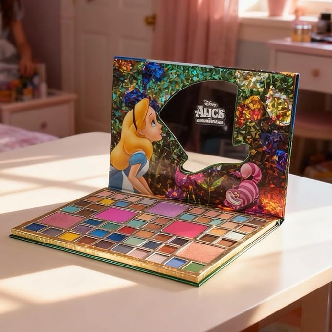 Alice in Wonderland 55 Well Eye Shadow Palette with Mirror, Makeup for Girls and Teens, Shimmery and Matte Colors, by Townley Girl